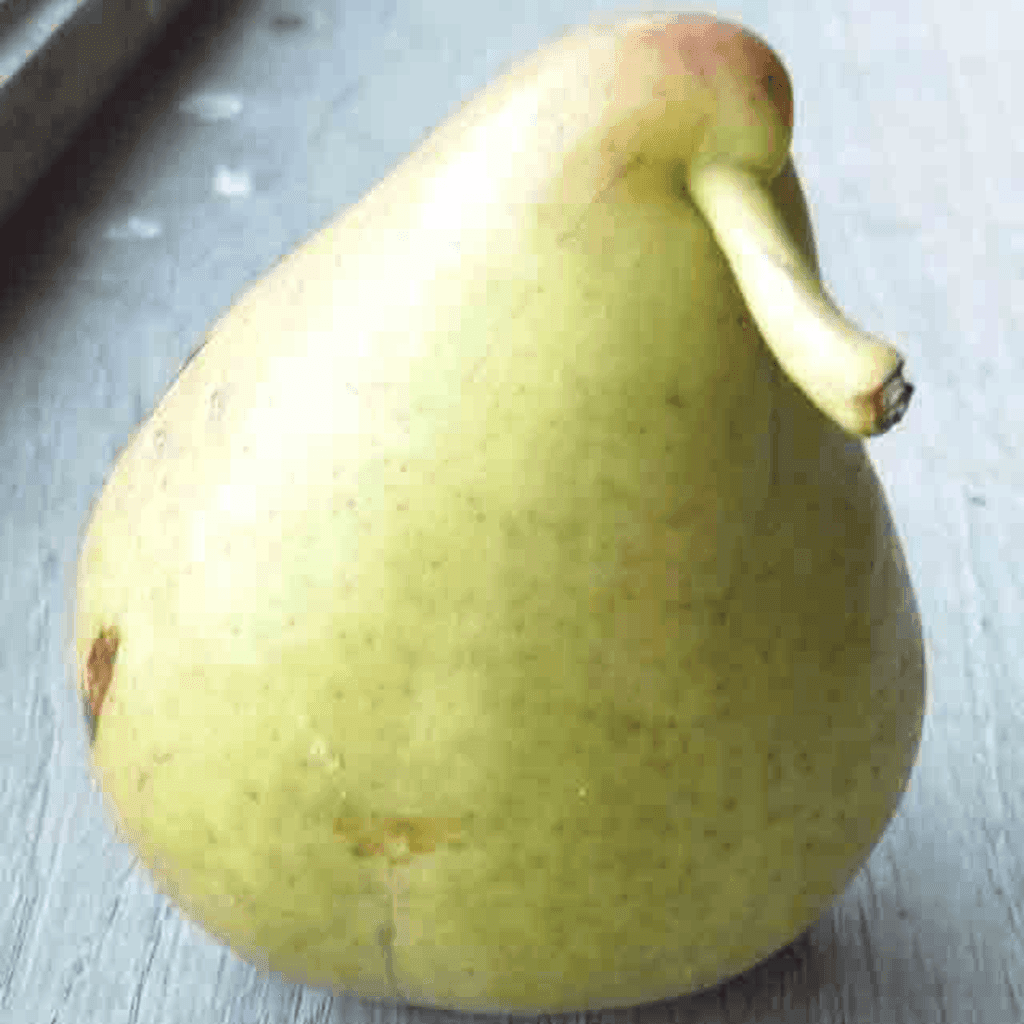 Norma je srednje krupna kruška, zelena sa sunčane strane smeđe crvena. Zri u 10 mesecu, meso je belo, sočno, blago kiselkasta, dosta čvrsta, a ipak mekana. Kožica je deblja i čvrsta.